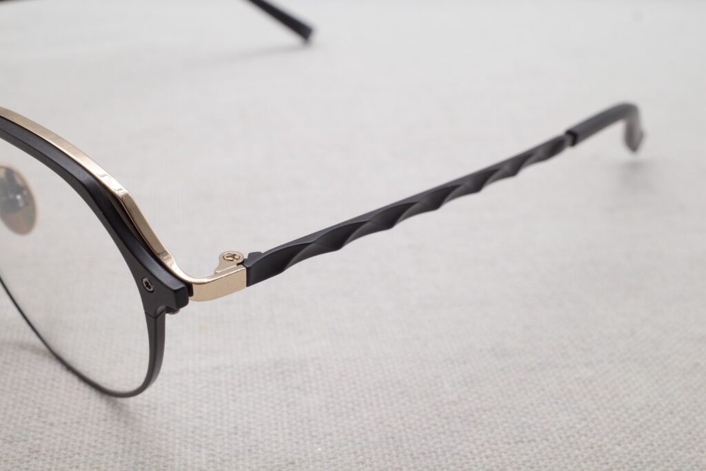 左右のレンズをつなぐブリッジやテンプルに
